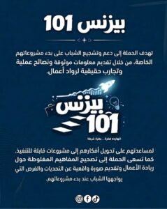 وتعتمد حملة “Business 101” على تقديم محتوى مبسط وتفاعلي عبر منصات التواصل الاجتماعي، يركز على ثلاثة محاور رئيسية لأي مشروع ناجح، وهي: التسويق، والإدارة التشغيلية، والتمويل.